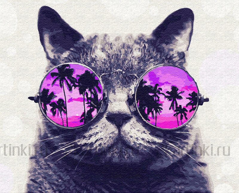 Картина по номерам «Кот в круглых очках с пальмами» размером 40x50 см см. купить по выгодной цене 890 ₽ с доставкой по Москве и всей России.