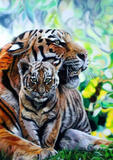 Алмазная вышивка «Тигрёнок с тигрицей на летней поляне» 40x50 см